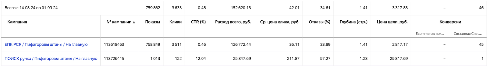 Результат: стоимость заявки 1 800₽–2 500₽, но низкий % продаж привел к остановке кампании.